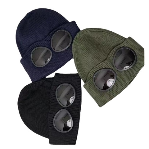 Berretto invernale semplice all'ingrosso con occhiali Unisex caldo cappello lavorato a maglia per il tempo libero di marca berretto elegante da esterno